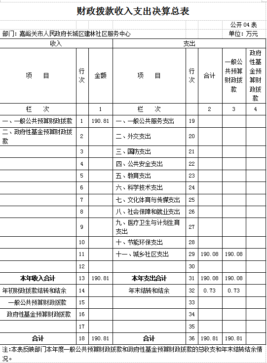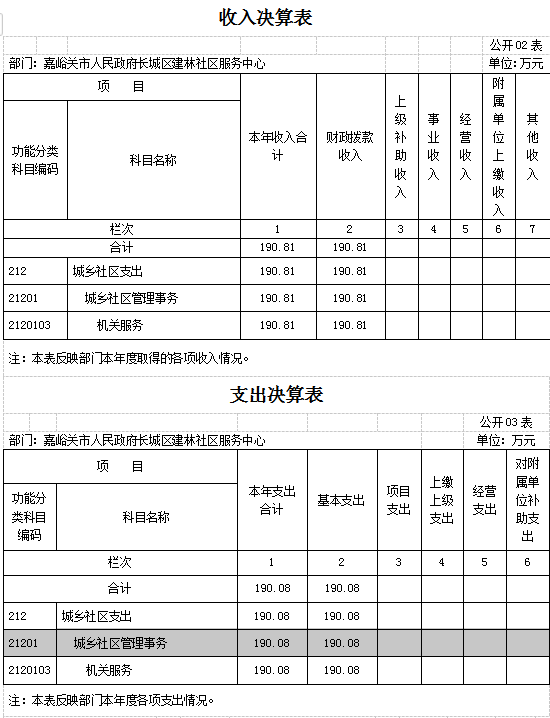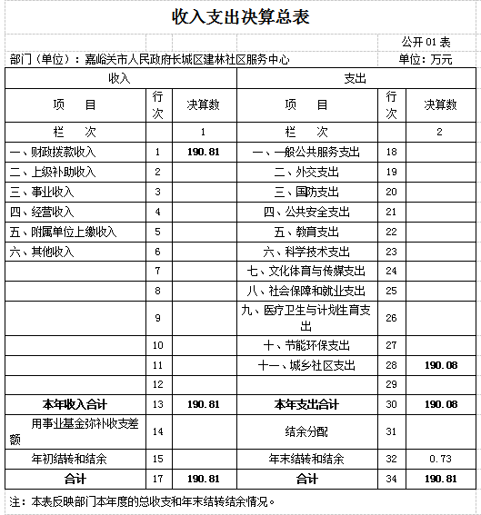 建林社区服务中心部门决算表