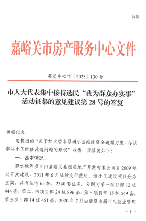 市人大代表集中接待选民“我为群众办实事”活动征集的意见建议第28号的答复