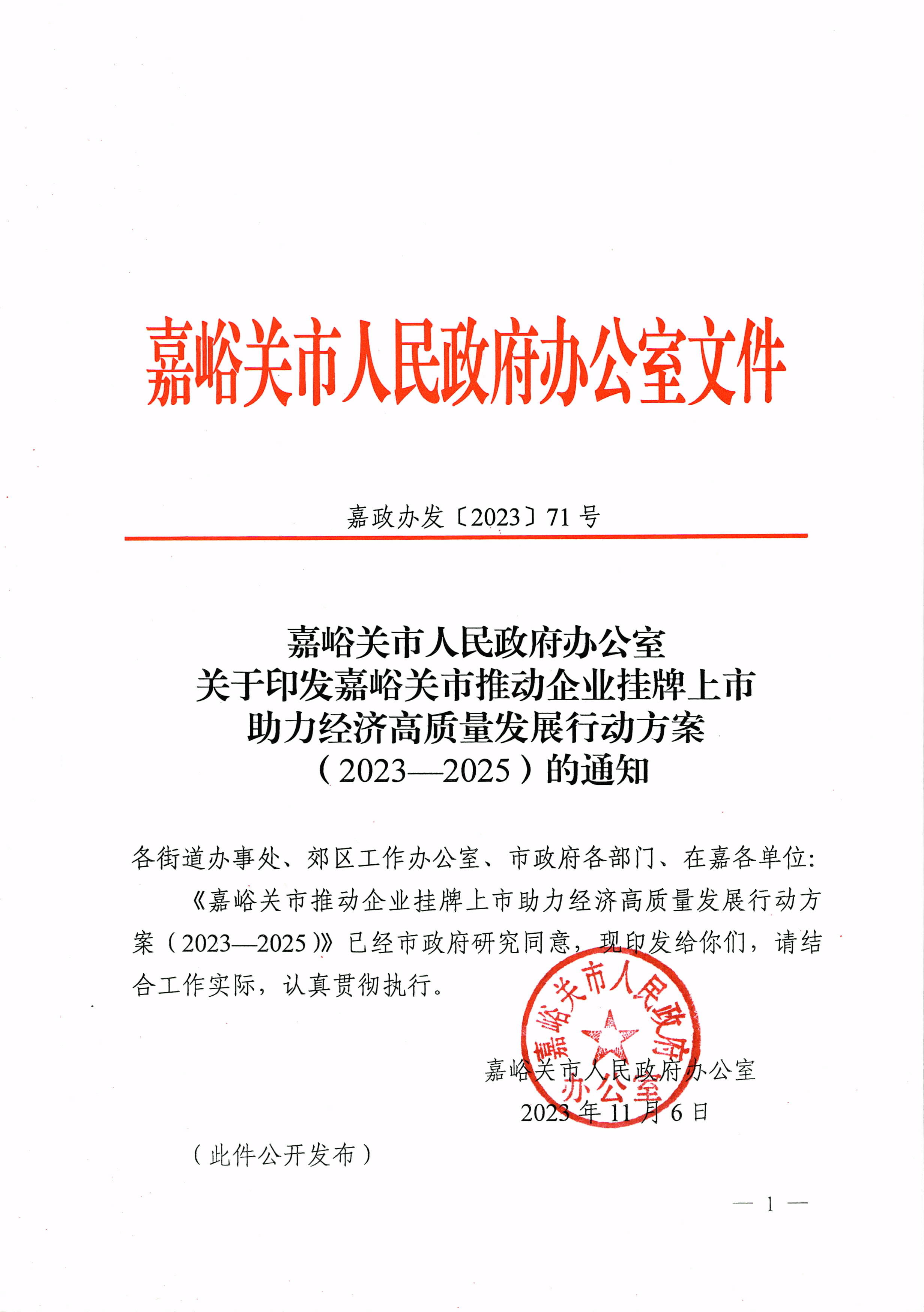 嘉峪关市推动企业挂牌上市助力经济高质量发展行动方案(2023-2025年)