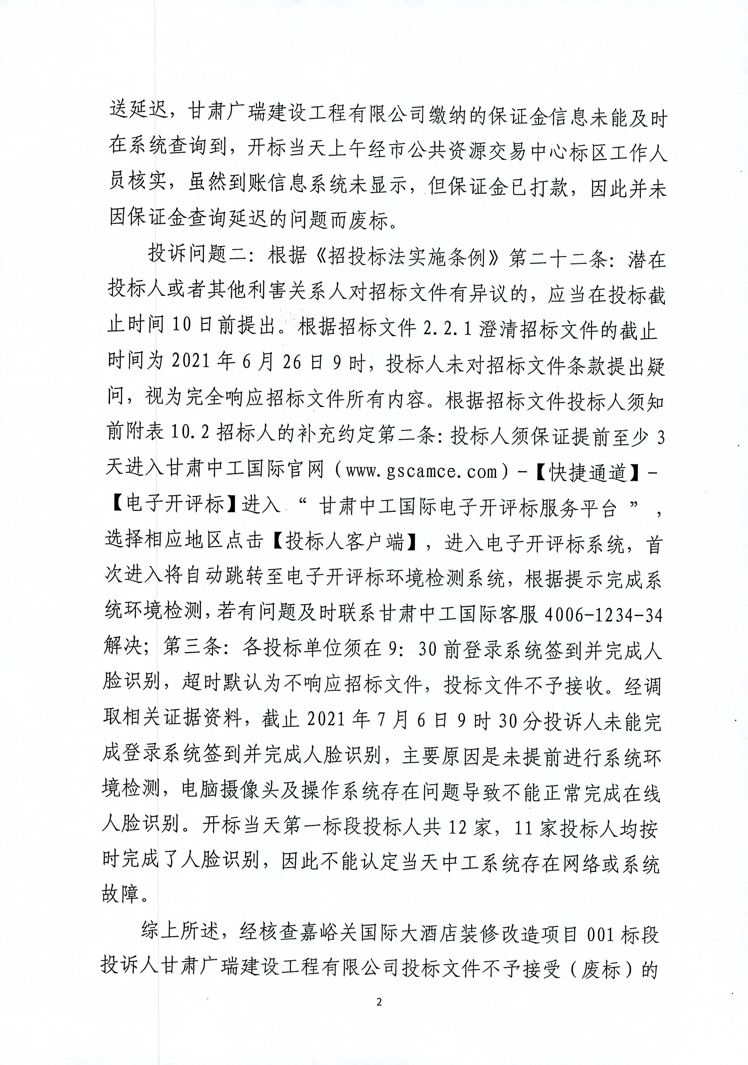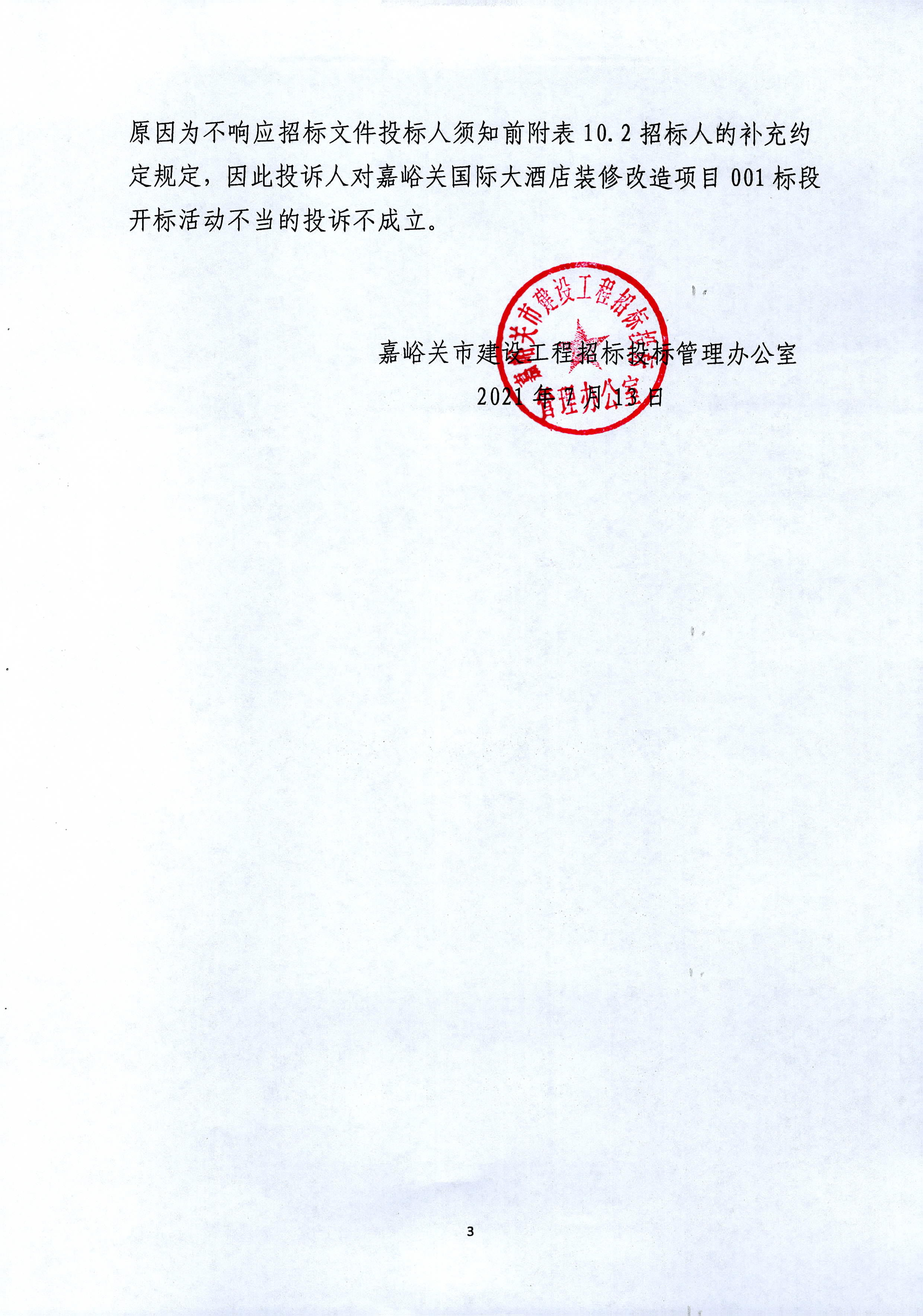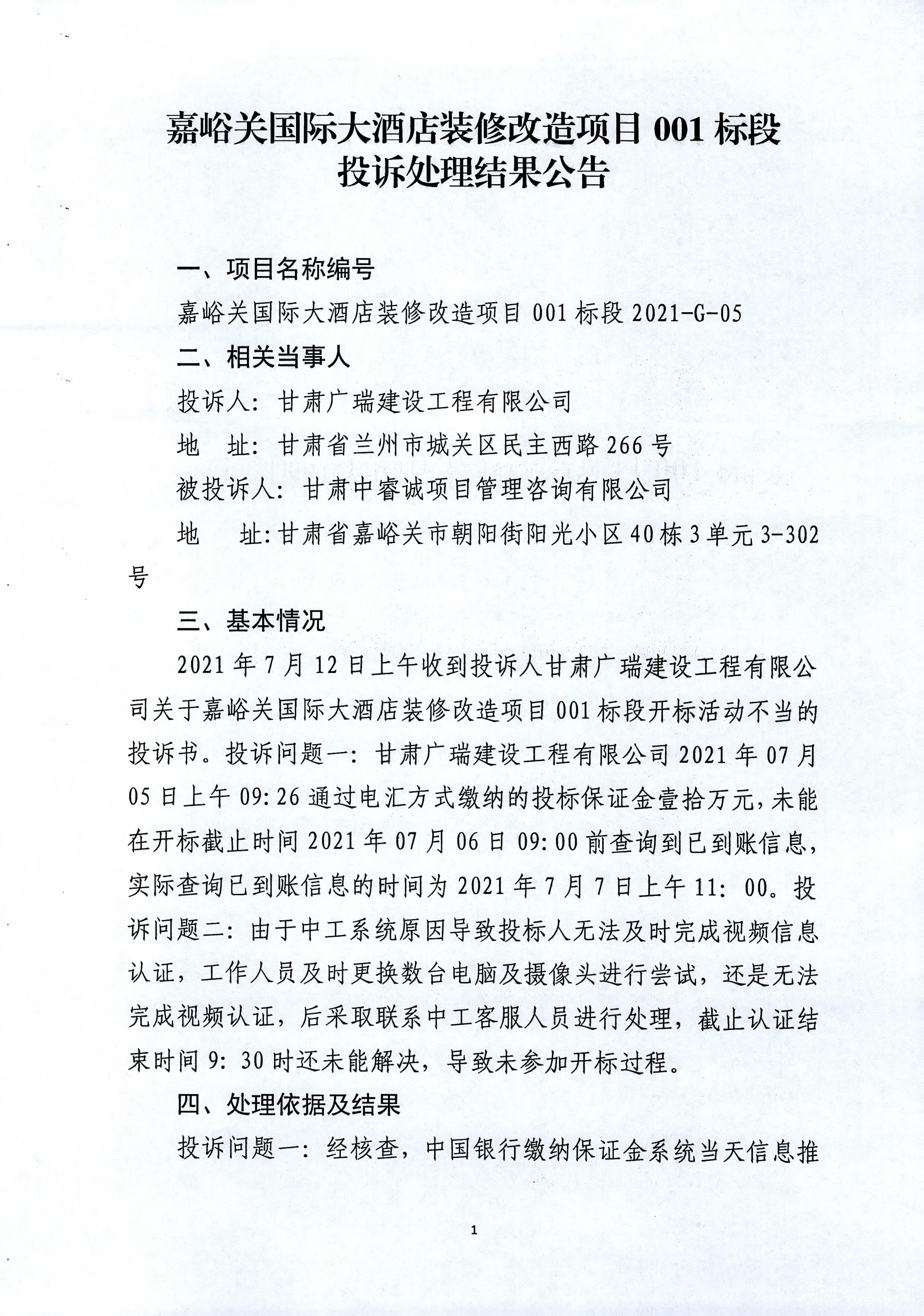 嘉峪关国际大酒店投诉处理情况和调查结果公示