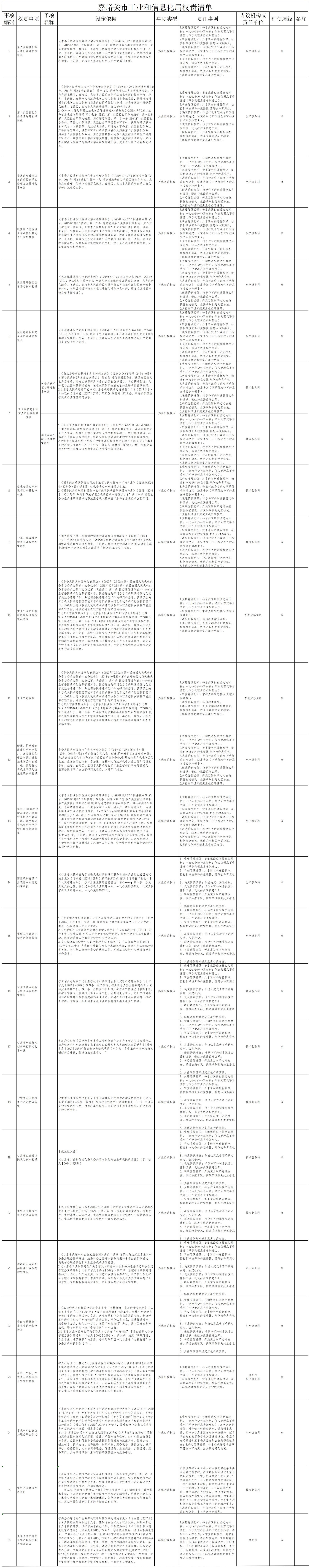 嘉峪关市工信局权责清单