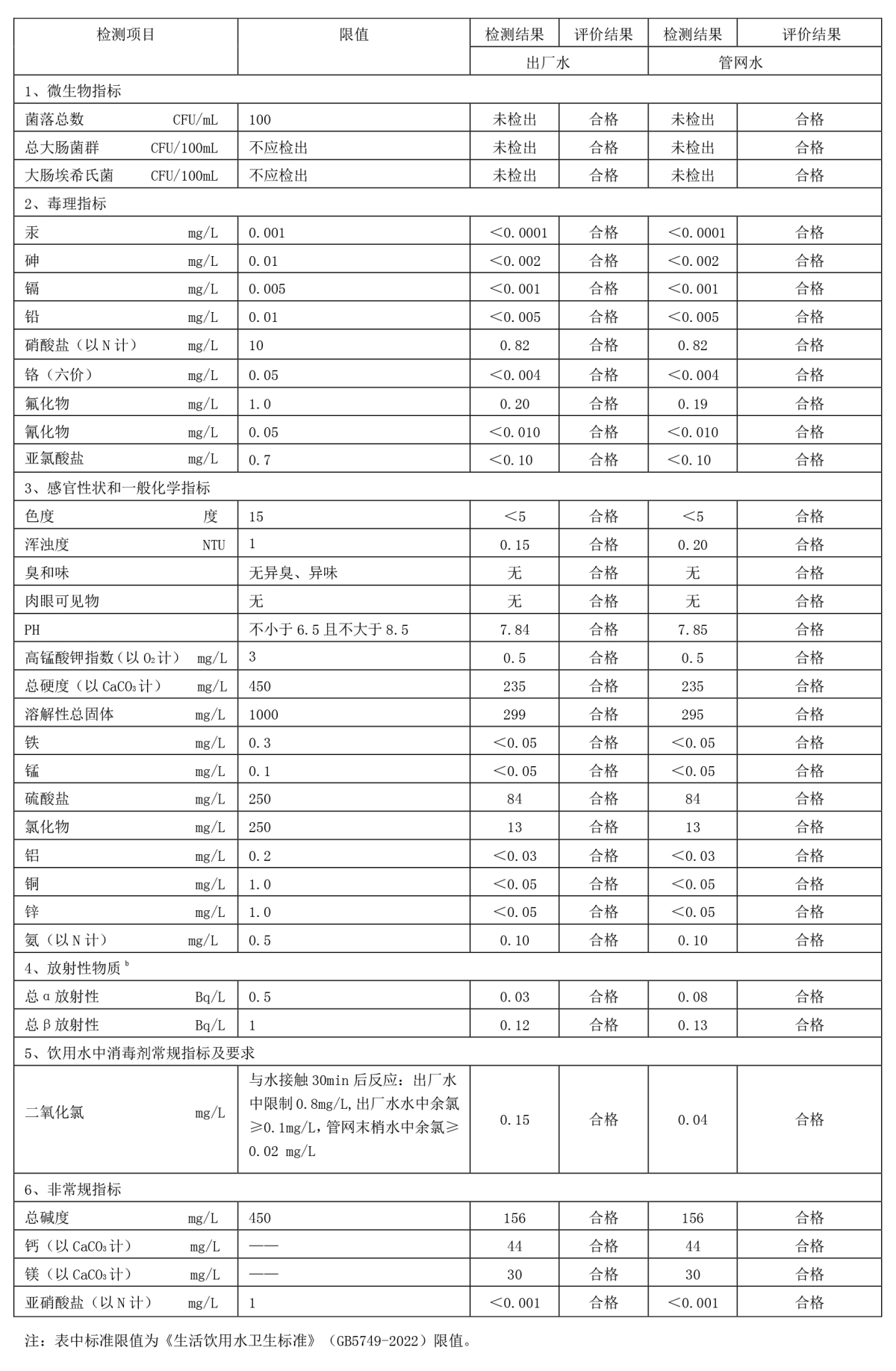 嘉峪关市益民通供水有限公司3月水质检测结果公示