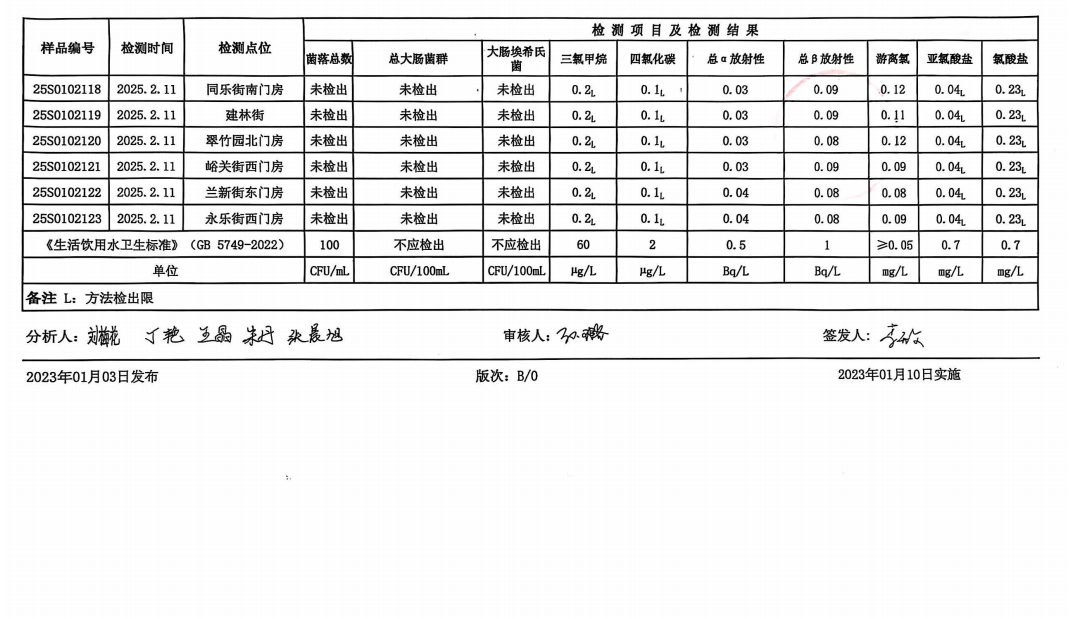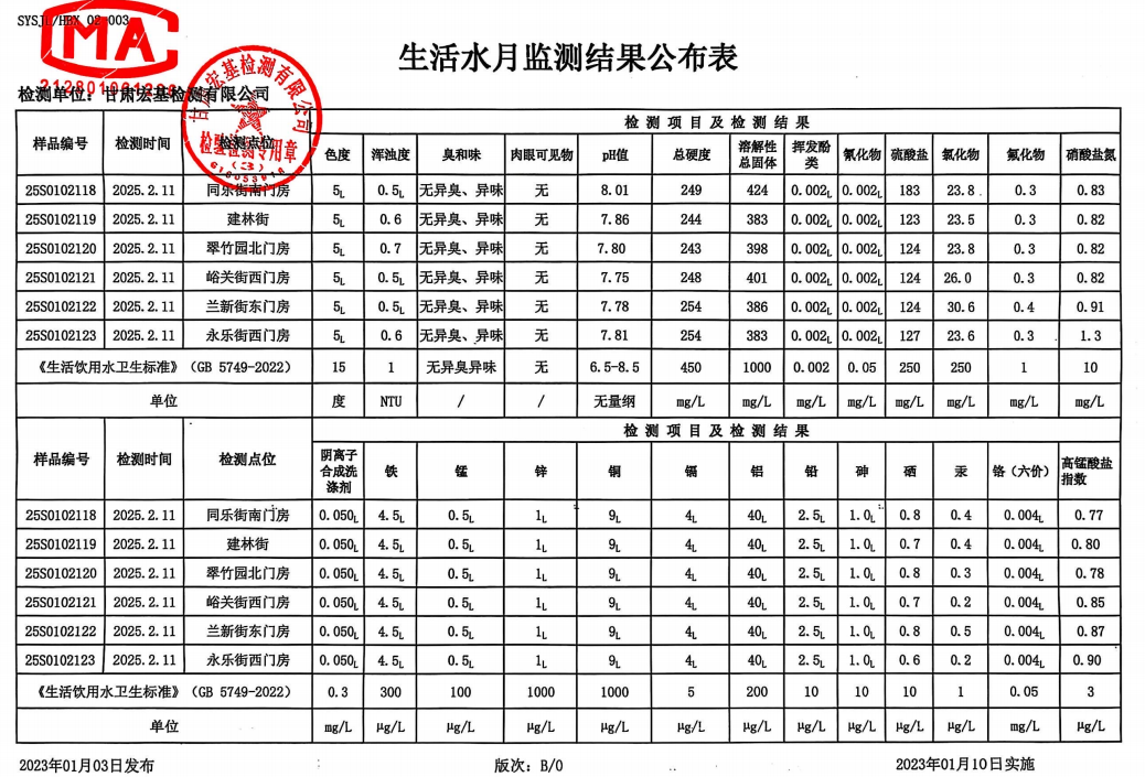 嘉峪关市嘉恒公司2月水质检测结果公示