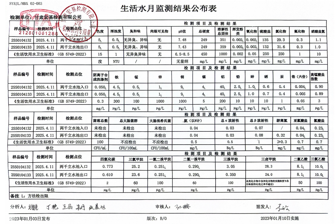 嘉峪关市嘉恒公司4月水质检测结果公示