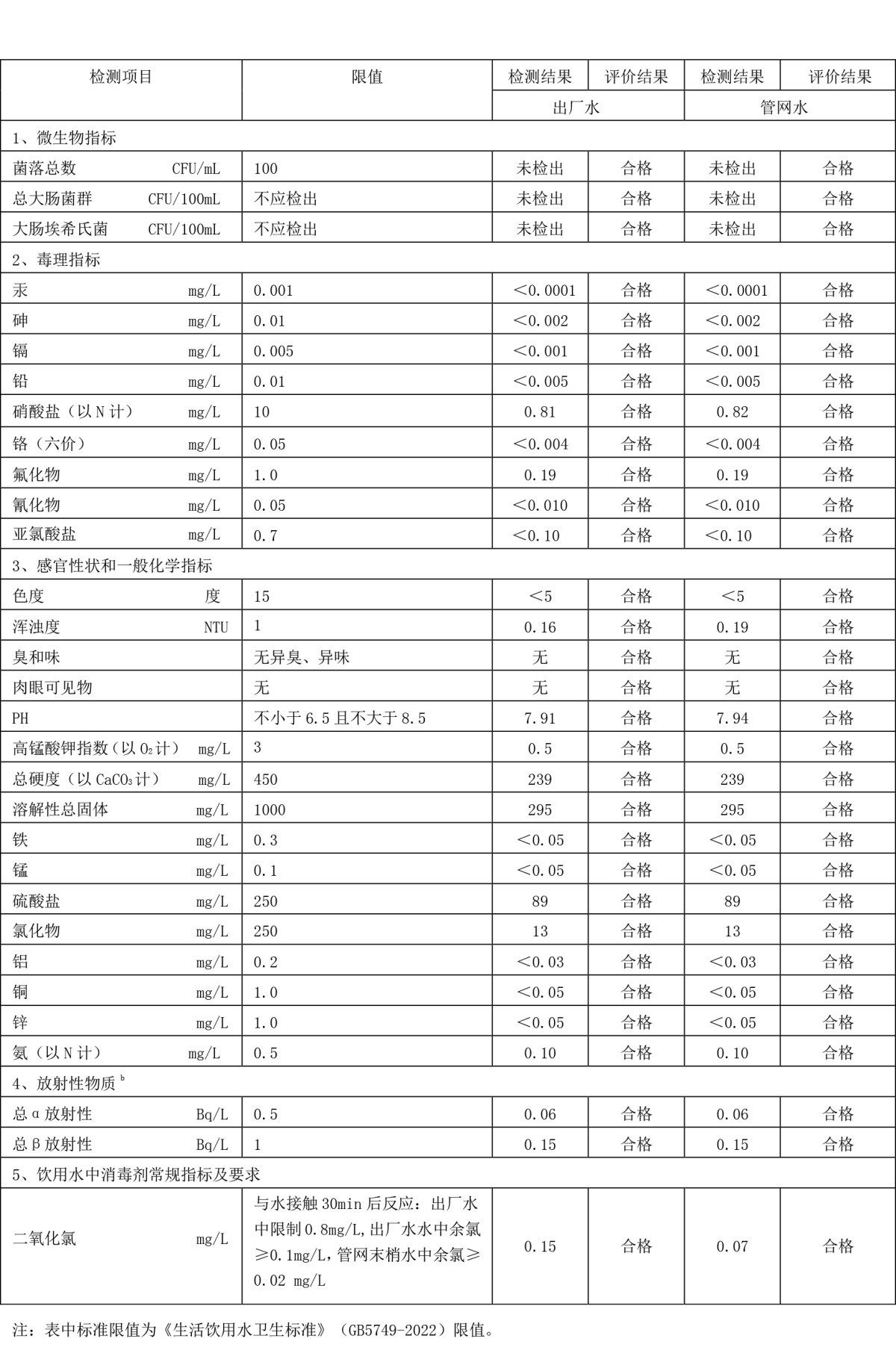 嘉峪关市益民通供水有限公司4月水质检测结果公示