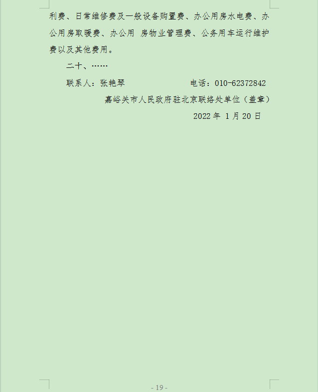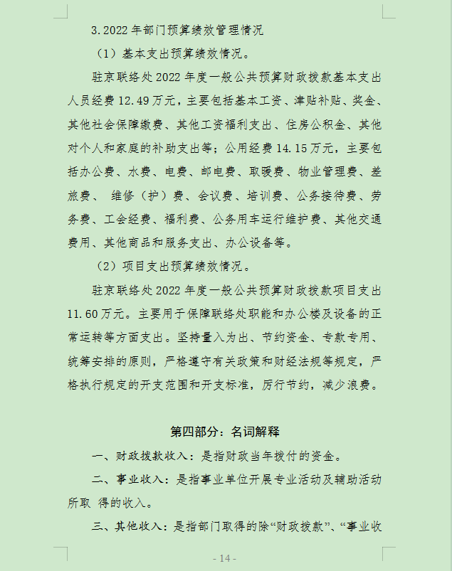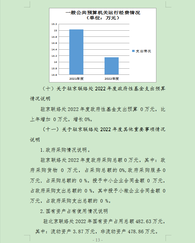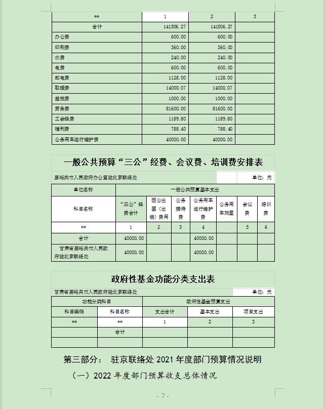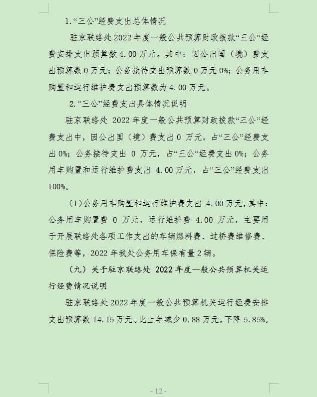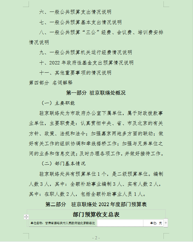 嘉峪关市驻京办2022年部门预算信息公开情况说明