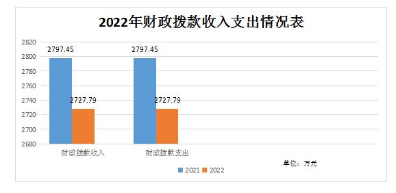 嘉峪关市第六中学2022年度财政拨款收入2727.79万元,比上年减少69.66万元,减少2.55 %;总支出2727.79万元,比上年减少69.66万元,减少2.55 %。