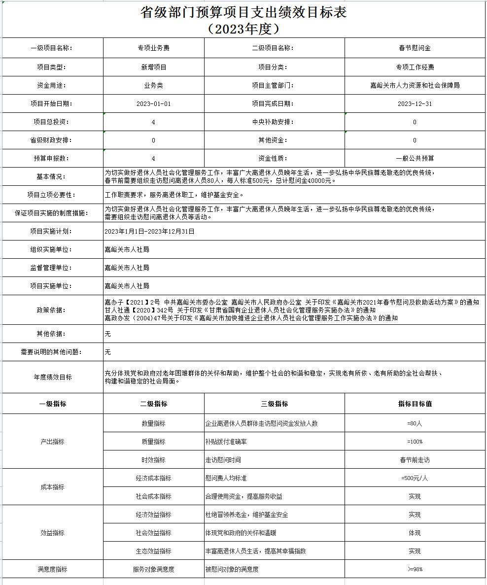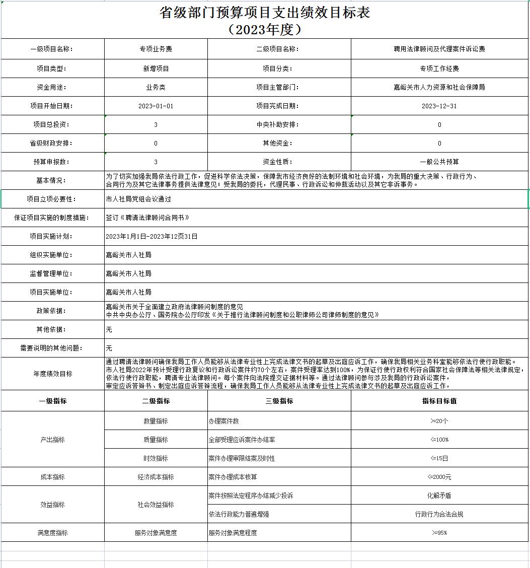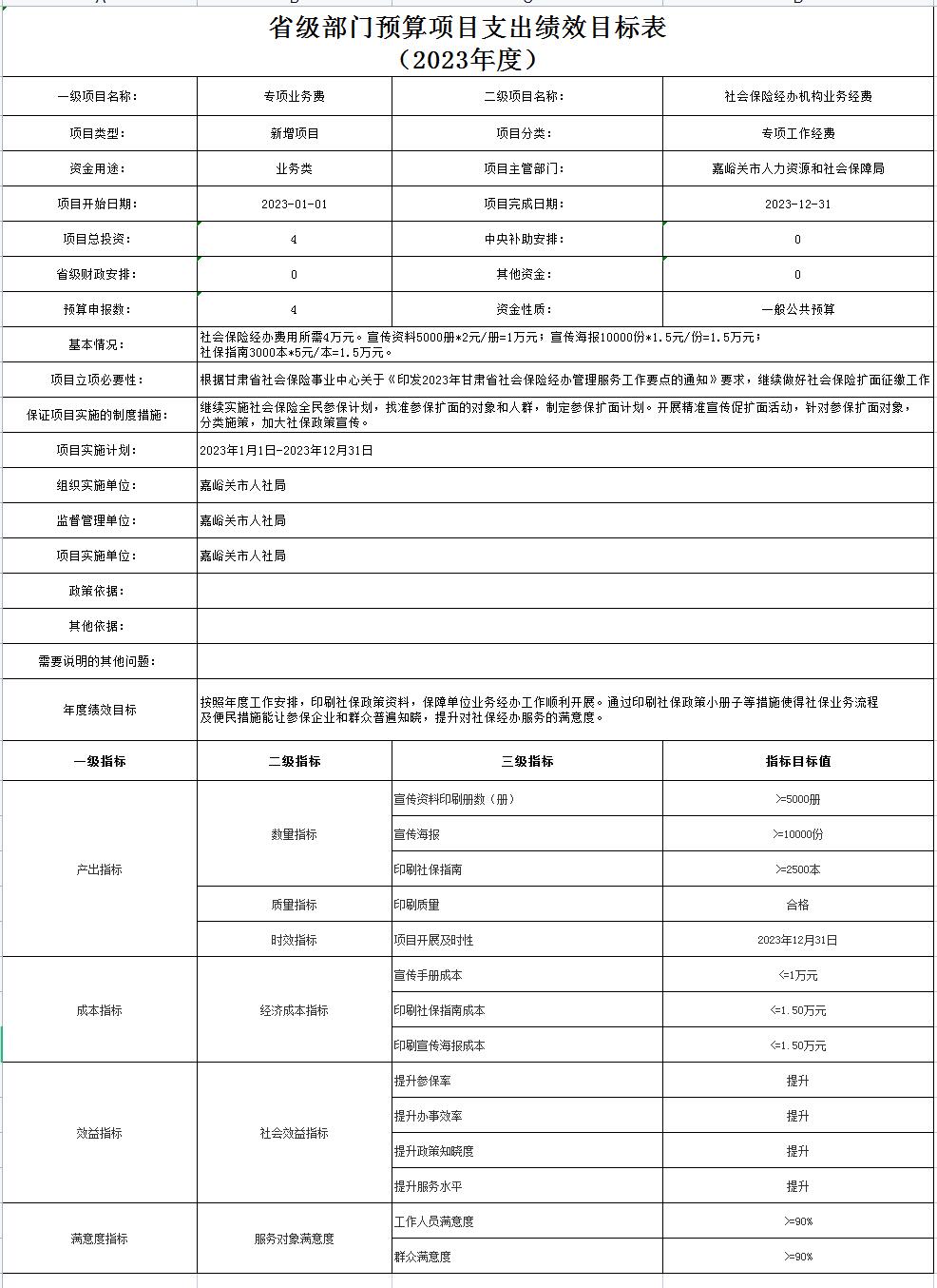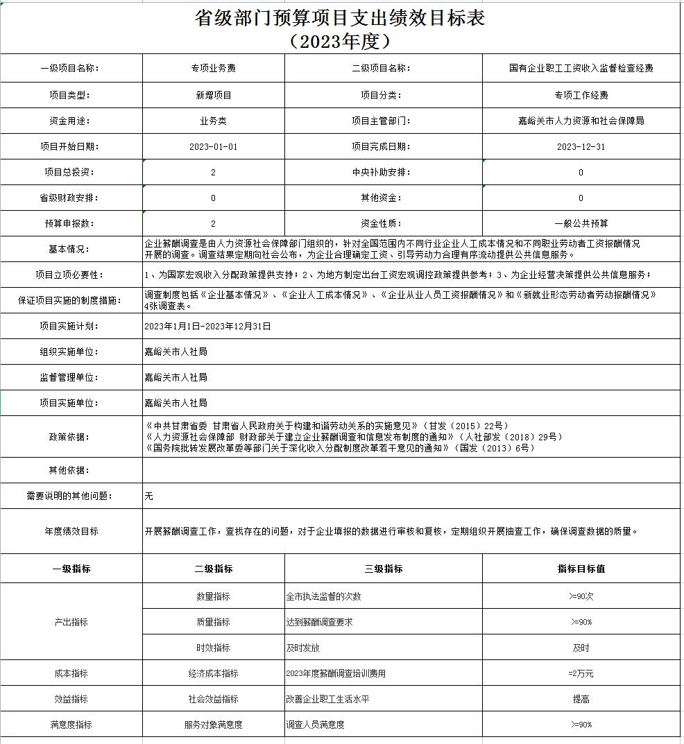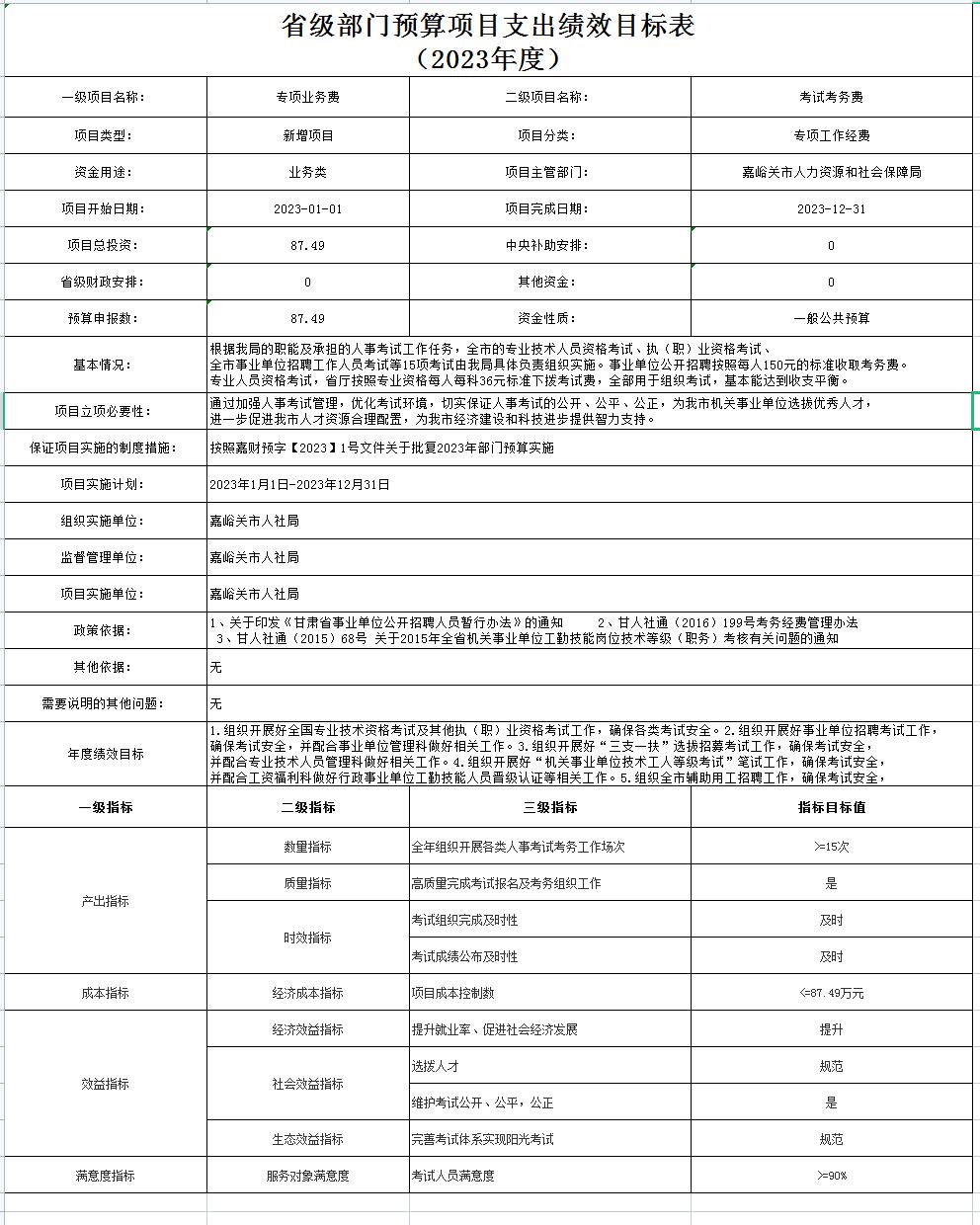 (十一)关于嘉峪关市人力资源和社会保障局2023年度其他重要事项情况说明