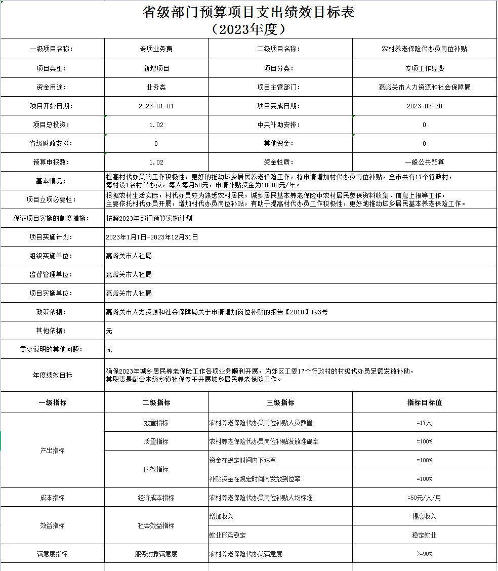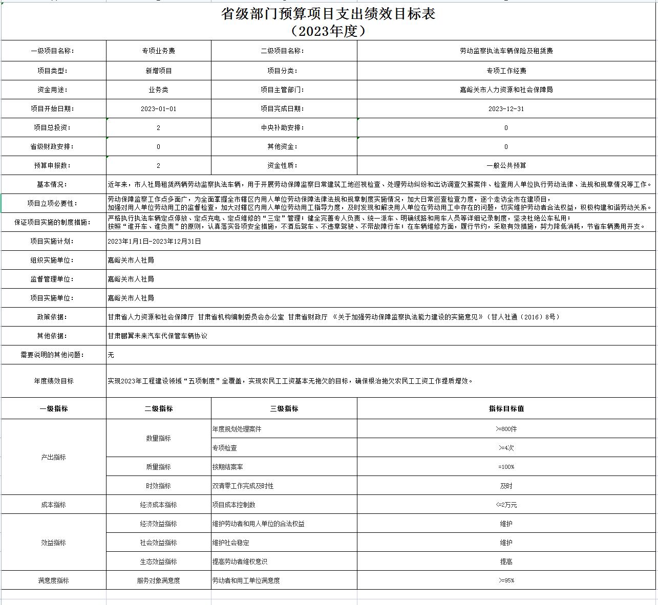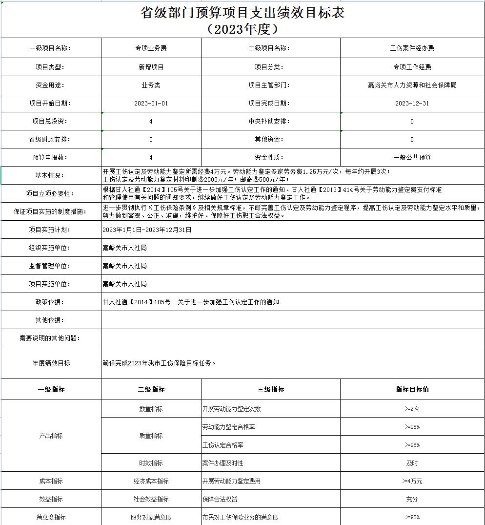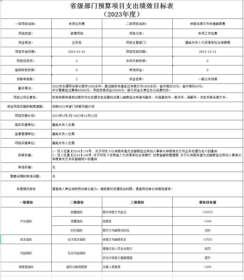 第二部分:嘉峪关市人力资源和社会保障局2023年度部门预算表