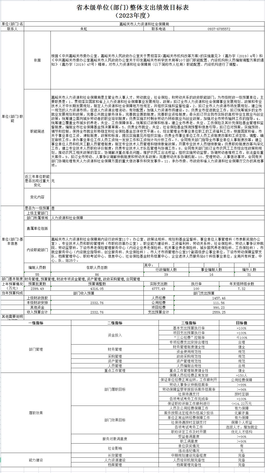 (一)嘉峪关市人力资源和社会保障局23年部门预算收支总体情况