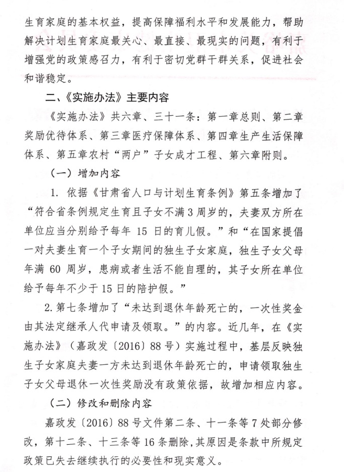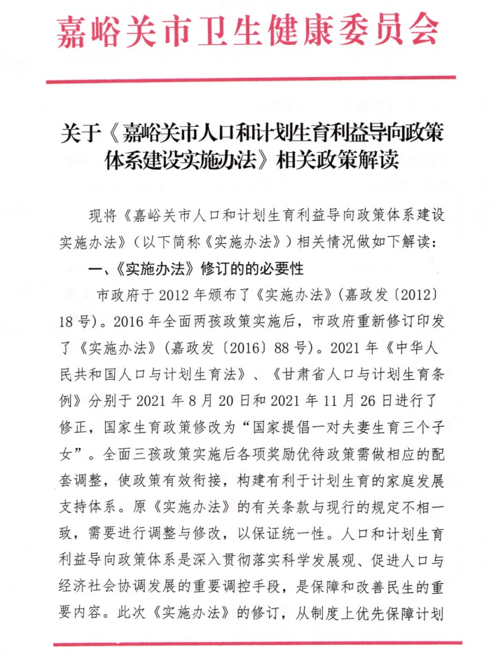关于《嘉峪关市人口和计划生育利益导向政策体系建设实施办法的通知》政策解读