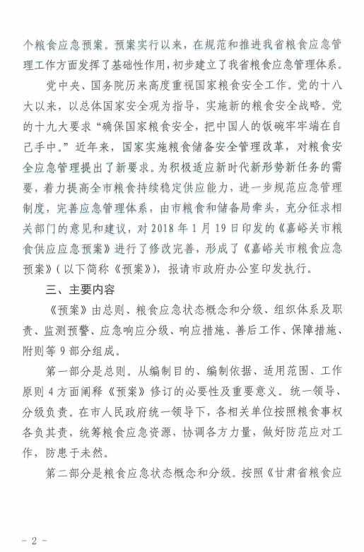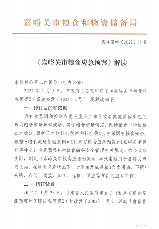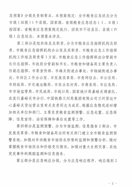 嘉峪关市人民政府办公室关于印发嘉峪关市粮食应急预案的通知