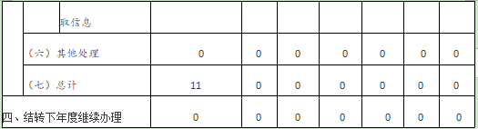信息内容 | 上一年项目数量 | 本年增/减 | 处理决定数量 |