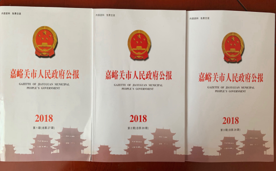 3.政府公报。2018年共编辑发行市政府公报3期,公开政府决策、重要文件和政府大事记等政府信息,并在嘉峪关市政府门户网站同步发布。在市图书馆借阅大厅设置了政府公报专栏,以方便公众查阅。