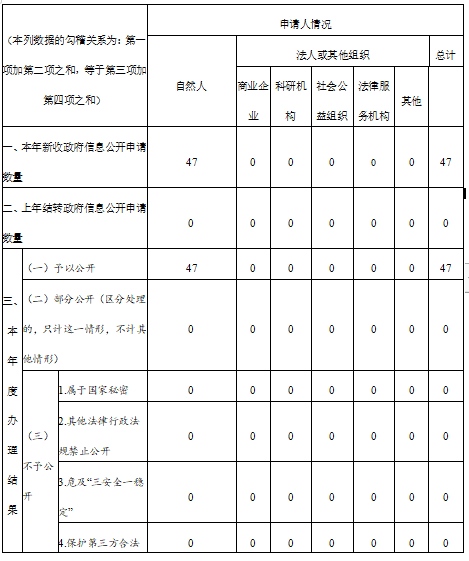 (二)依申请公开政府信息情况。2023年,市政府办公室共收到政府信息公开申请47件,现已全部办结。