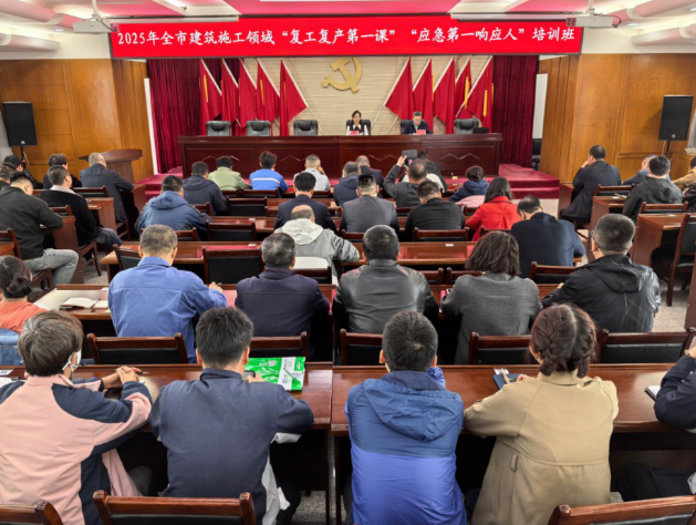 一年春作首,万事安全先。为全面压实安全生产责任,推动建筑行业安全有序复工复产,4月7日,市住建局成功举办2025年全市建筑施工领域安全生产“复工复产第一课”暨“应急第一响应人”专题培训班。全市建筑施工企业主要负责人、项目负责人、监理单位总监理工程师及房屋市政工程安全监管人员共计160余人参加培训。