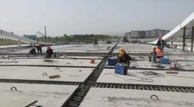 在上跨清嘉高速公路156.4米桥梁的施工现场,各建设者们正抢抓施工“黄金期”,采用同步流水作业、穿插施工的方式进行施工,各项工序都有序展开,用实际行动奋力攻坚。目前,道路工程正在实施一层水稳摊铺、人行道铺装,桥面部分正在进行湿接缝钢筋焊接工作,绿化部分正在种植树木。全力以赴,力争早日完工投用。