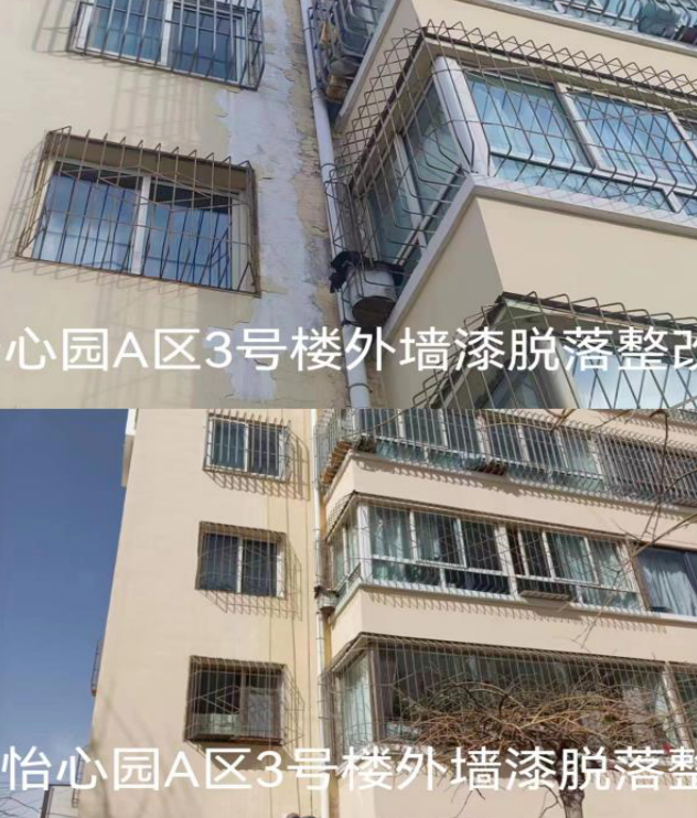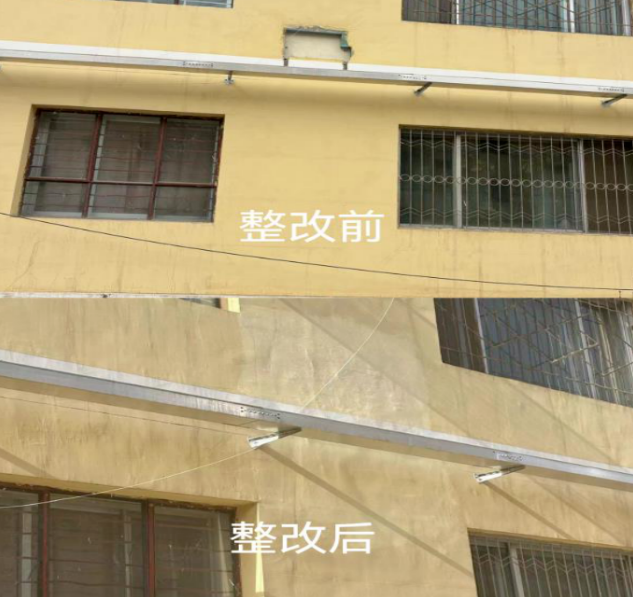 强化问题整改,保安全不留隐患。在收到街道反映的问题清单后,我局立即组织相关施工单位逐项筛查、精准发力、积极落实整改,合计维修佳苑小区、文苑小区等8个小区外墙漆脱落、墙裙砖脱落各类问题12处,目前已全部整改完毕。