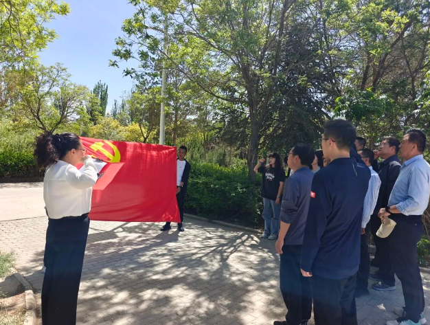 在污水处理厂党建文化广场,党支部书记带领全体党员面向党旗庄严宣誓:“我志愿加入中国共产党,拥护党的纲领,遵守党的章程……”铿锵誓言回荡在厂区,党员们佩戴党员党徽、高举右拳,以坚定姿态重温入党初心。