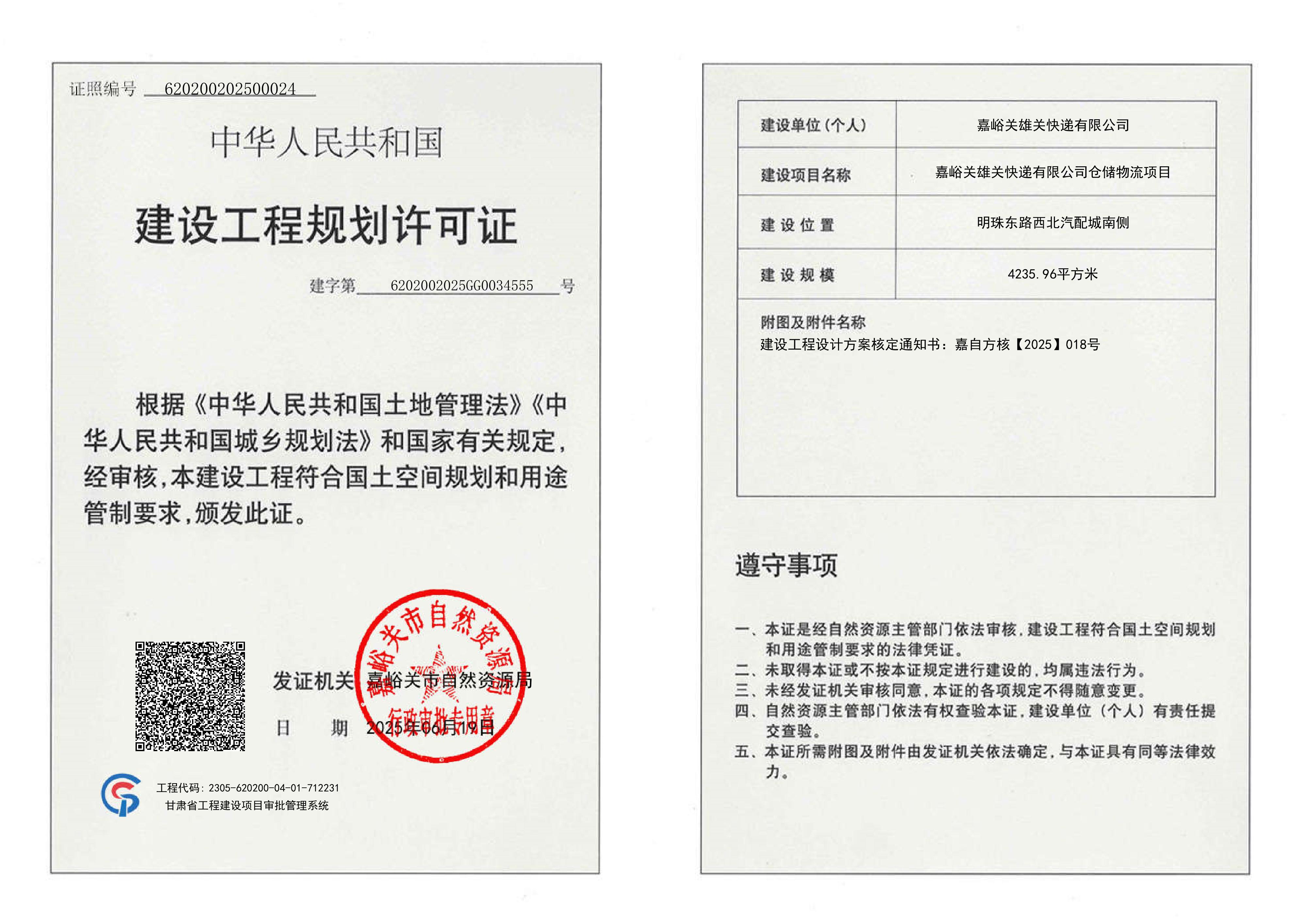 《嘉峪关雄关快递有限公司仓储物流项目》批后公布