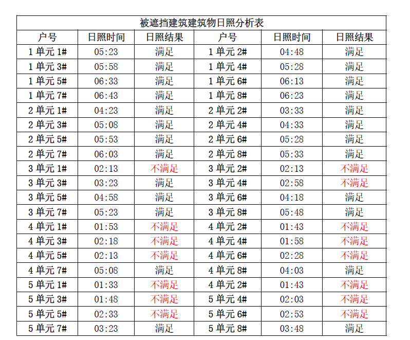 一、根据《城市居住区规划设计标准》及建筑日照分析管理办法,被遮挡建建筑日照分析结果见下表: