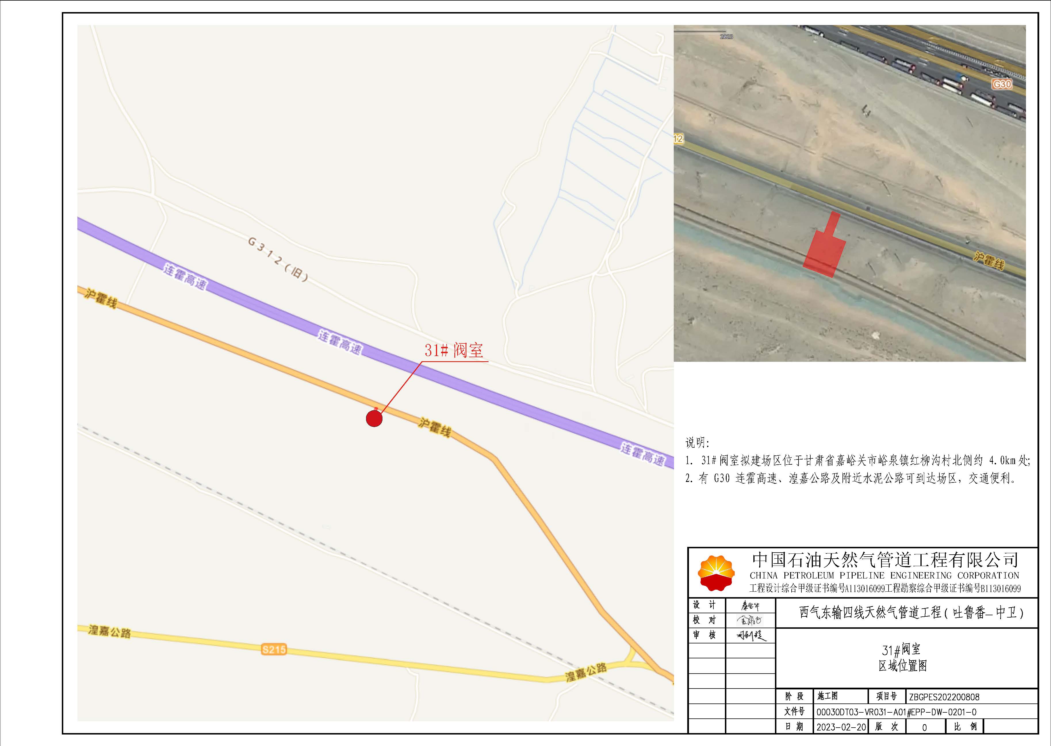 1、项目名称:西气东输四线天然气管道工程(吐鲁番-中卫)项目嘉峪关段31#阀室