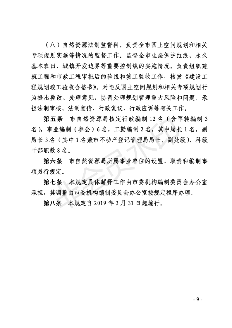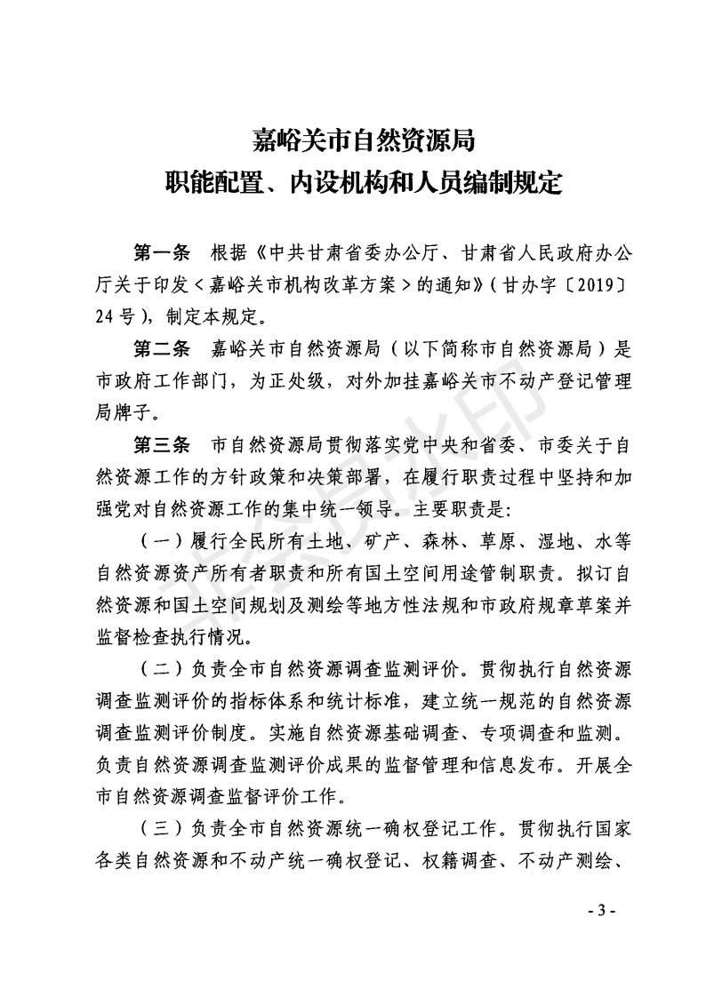 嘉峪关市自然资源局职能配置、内设机构和人员编制规定
