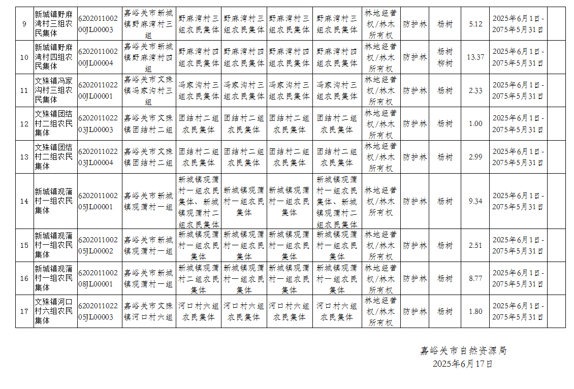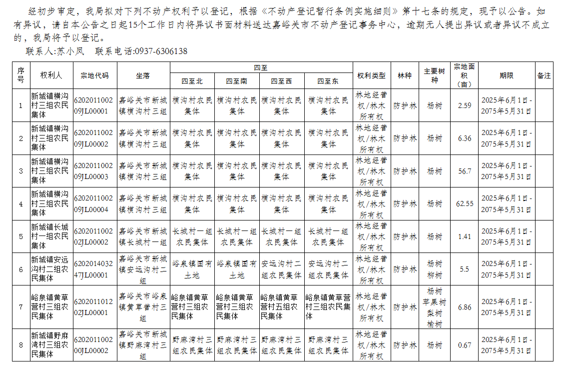 嘉峪关市农村林地经营权及林木所有权首次登记公告