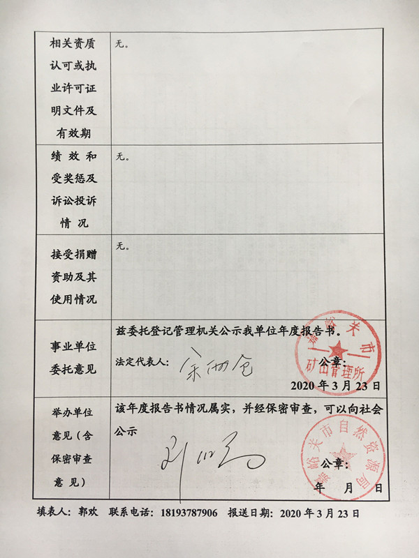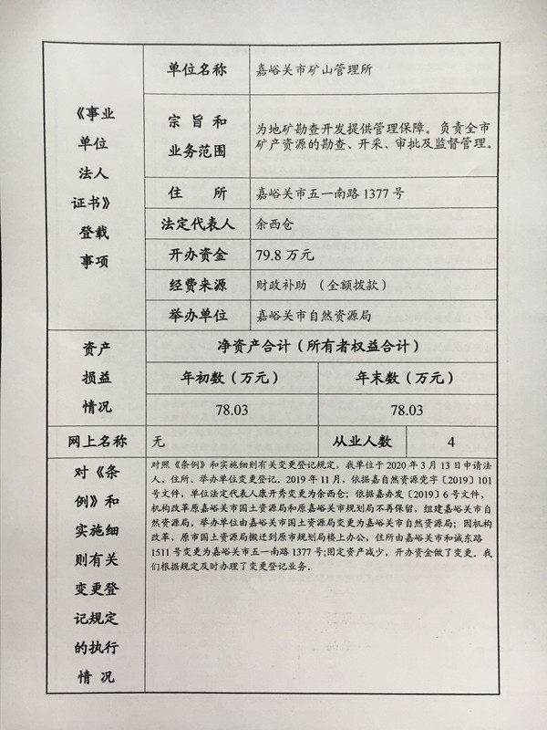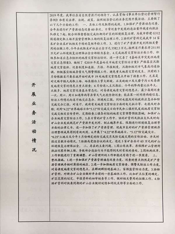 嘉峪关市矿山管理所2019年度法人年度报告书