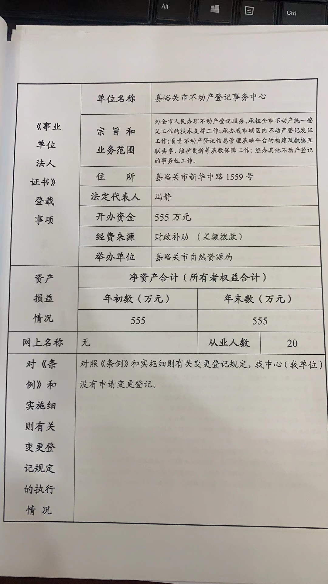嘉峪关市不动产登记中心2022年法人年度报告书