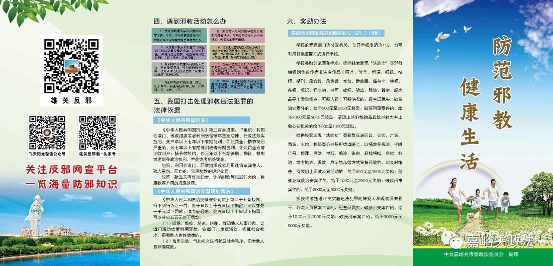 活动中,反邪教工作人员从什么是邪教、宗教和邪教的区别、活动比较突出的邪教组织、遇到邪教活动怎么办、我国打击处理邪教违法犯罪的法律依据和嘉峪关市举报邪教违法犯罪活动奖励办法(试行)等六个方面向广大群众现场进行了讲解,并发放了宣传册、反邪教纪念品。通过此次宣传活动,进一步提高了全市人民群众识别邪教、防范邪教、拒绝邪教的能力和自觉抵制邪教的意识,挤压邪教生存空间,厚积反邪教土壤,受到了广大群众的一致好评。