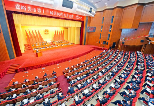 下午3时,王进平宣布:嘉峪关市第十一届人民代表大会第二次会议开幕!全体起立,奏唱国歌。